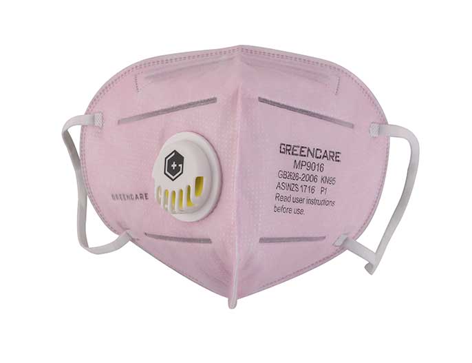 四層成人立體帶閥口罩-粉色